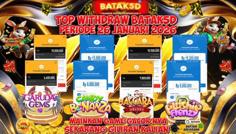 BATAK5D – Situs Bandar Togel Online, Live Casino dan Slot Online Terpercaya yang terbukti membayar berapapun kemenangan Anda. Jika Anda masih mencari Situs Bandar Terpercaya, jangan ragu untuk bergabung bersama BATAK5D . Dalam 1 akun Anda bisa menikmati semua permainan yang disediakan dengan minimal deposit hanya Rp. 5.000,- melalui transaksi Bank Lokal Indonesia dan Dompet Digital yang online 24 jam….