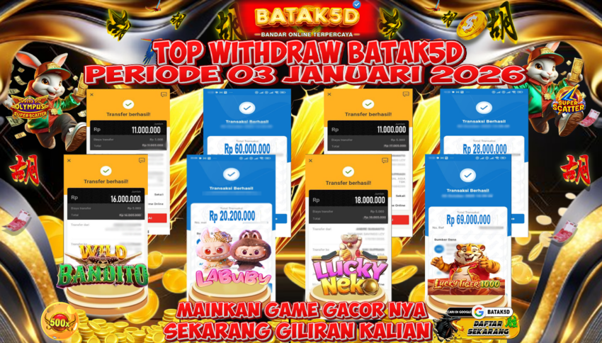Selamat Kepada Member Setia BATAK5D dengan TOP WITHDRAW BATAK5D PRIODE 03 JANUARY 2026 langsung mendarat ke rekening tanpa bertele – tele. Terimakasih telah mempercayakan BATAK5D sebagai Situs Bandar Terpercaya dan Terjamin Aman! Tunggu apalagi? Daftar sekarang juga bersama BATAK5D dan dapatkan berbagai promo menarik setiap harinya.