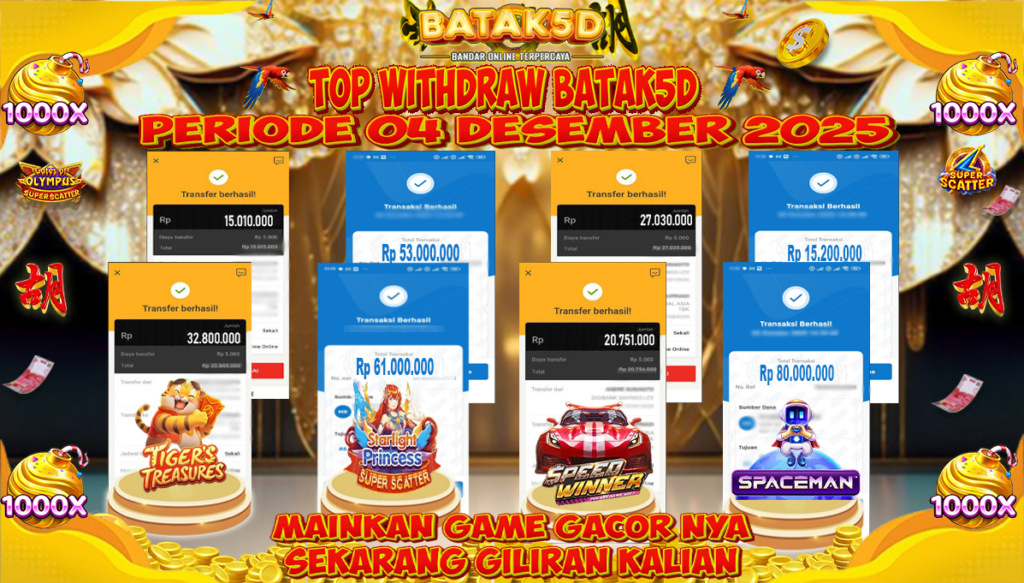 Selamat Kepada Member Setia BATAK5D dengan TOP WITHDRAW BATAK5D PRIODE 04 DECEMBER 2025 langsung mendarat ke rekening tanpa bertele – tele. Terimakasih telah mempercayakan BATAK5D sebagai Situs Bandar Terpercaya dan Terjamin Aman! Tunggu apalagi? Daftar sekarang juga bersama BATAK5D dan dapatkan berbagai promo menarik setiap harinya