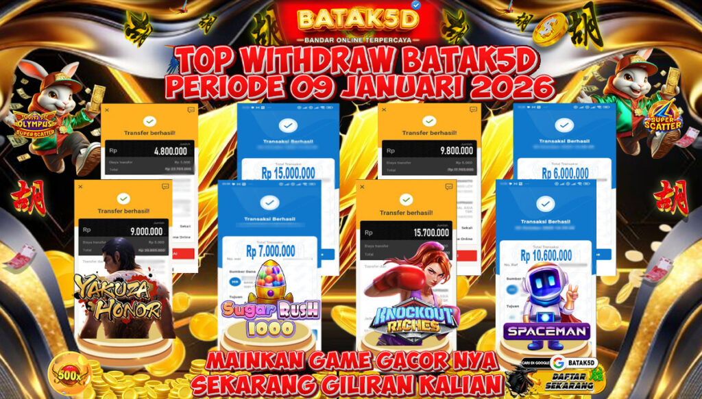 Selamat Kepada Member Setia BATAK5D dengan TOP WITHDRAW BATAK5D PRIODE 09 JANUARY 2026 langsung mendarat ke rekening tanpa bertele – tele. Terimakasih telah mempercayakan BATAK5D sebagai Situs Bandar Terpercaya dan Terjamin Aman! Tunggu apalagi? Daftar sekarang juga bersama BATAK5D dan dapatkan berbagai promo menarik setiap harinya.