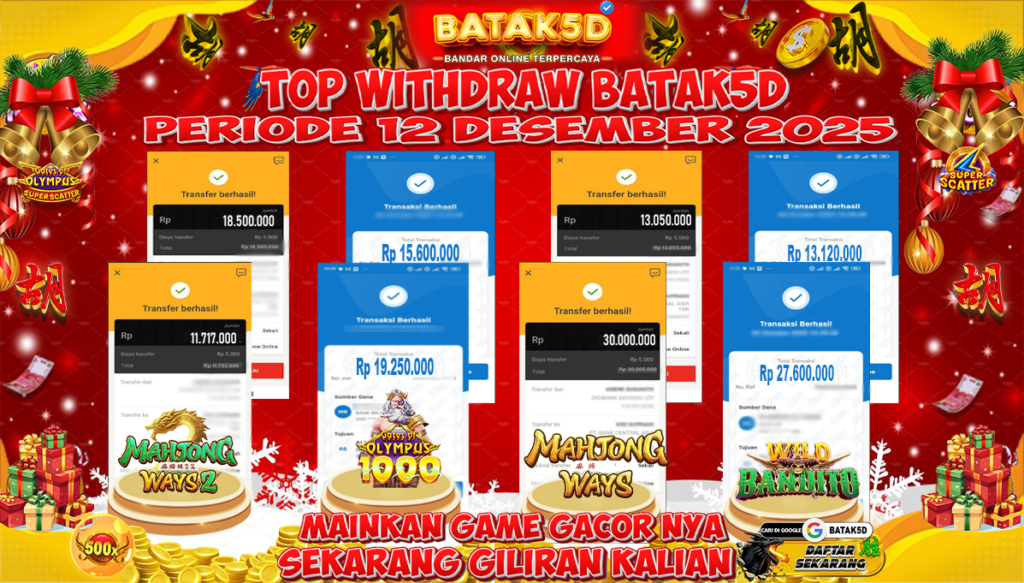 Selamat Kepada Member Setia BATAK5D dengan TOP WITHDRAW BATAK5D PRIODE 12 DECEMBER 2025 langsung mendarat ke rekening tanpa bertele – tele. Terimakasih telah mempercayakan BATAK5D sebagai Situs Bandar Terpercaya dan Terjamin Aman! Tunggu apalagi? Daftar sekarang juga bersama BATAK5D dan dapatkan berbagai promo menarik setiap harinya.
