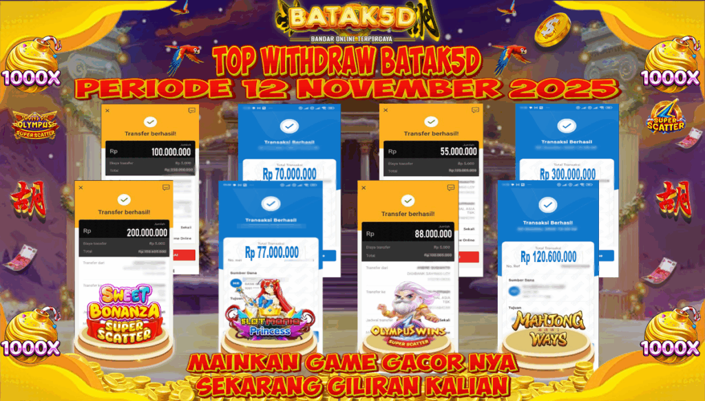 Selamat Kepada Member Setia BATAK5D dengan TOP WITHDRAW BATAK5D PRIODE 12 NOVEMBER 2025 langsung mendarat ke rekening tanpa bertele – tele. Terimakasih telah mempercayakan BATAK5D sebagai Situs Bandar Terpercaya dan Terjamin Aman! Tunggu apalagi? Daftar sekarang juga bersama BATAK5D dan dapatkan berbagai promo menarik setiap harinya.