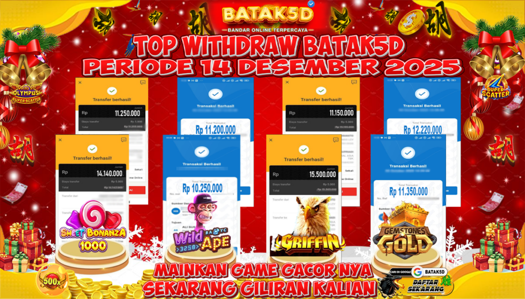 Selamat Kepada Member Setia BATAK5D dengan TOP WITHDRAW BATAK5D PRIODE 14 DECEMBER 2025 langsung mendarat ke rekening tanpa bertele – tele. Terimakasih telah mempercayakan BATAK5D sebagai Situs Bandar Terpercaya dan Terjamin Aman! Tunggu apalagi? Daftar sekarang juga bersama BATAK5D dan dapatkan berbagai promo menarik setiap harinya.