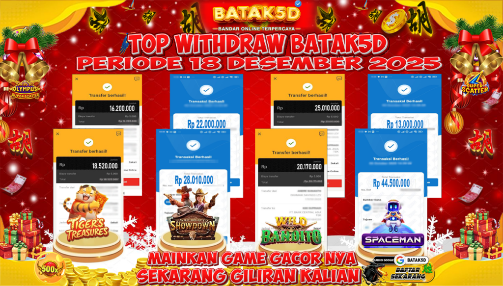 Selamat Kepada Member Setia BATAK5D dengan TOP WITHDRAW BATAK5D PRIODE 18 DECEMBER 2025 langsung mendarat ke rekening tanpa bertele – tele. Terimakasih telah mempercayakan BATAK5D sebagai Situs Bandar Terpercaya dan Terjamin Aman! Tunggu apalagi? Daftar sekarang juga bersama BATAK5D dan dapatkan berbagai promo menarik setiap harinya.