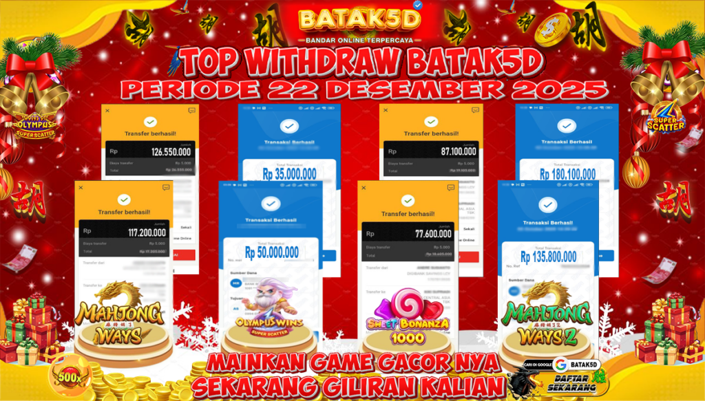Selamat Kepada Member Setia BATAK5D dengan TOP WITHDRAW BATAK5D PRIODE 23 DECEMBER 2025 langsung mendarat ke rekening tanpa bertele – tele. Terimakasih telah mempercayakan BATAK5D sebagai Situs Bandar Terpercaya dan Terjamin Aman! Tunggu apalagi? Daftar sekarang juga bersama BATAK5D dan dapatkan berbagai promo menarik setiap harinya.