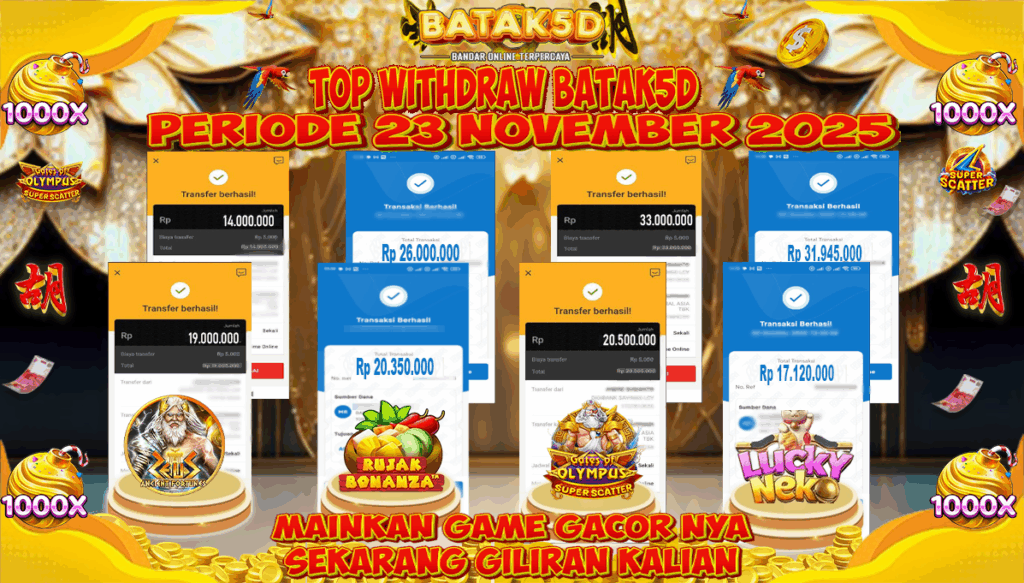 Selamat Kepada Member Setia BATAK5D dengan TOP WITHDRAW BATAK5D PRIODE 23 NOVEMBER 2025 langsung mendarat ke rekening tanpa bertele – tele. Terimakasih telah mempercayakan BATAK5D sebagai Situs Bandar Terpercaya dan Terjamin Aman! Tunggu apalagi? Daftar sekarang juga bersama BATAK5D dan dapatkan berbagai promo menarik setiap harinya.