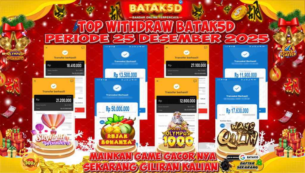Selamat Kepada Member Setia BATAK5D dengan TOP WITHDRAW BATAK5D PRIODE 25 DECEMBER 2025 langsung mendarat ke rekening tanpa bertele – tele. Terimakasih telah mempercayakan BATAK5D sebagai Situs Bandar Terpercaya dan Terjamin Aman! Tunggu apalagi? Daftar sekarang juga bersama BATAK5D dan dapatkan berbagai promo menarik setiap harinya.
